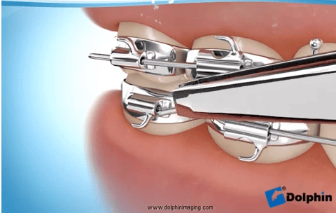 You can temporarily fix the loose wire by using the back of a spoon or the eraser end of a pencil to carefully and gently push the wire back into place. If the loose wire is causing irritation to your lips or cheeks, put wax or a wet cotton ball over the broken wire to relieve the pain.